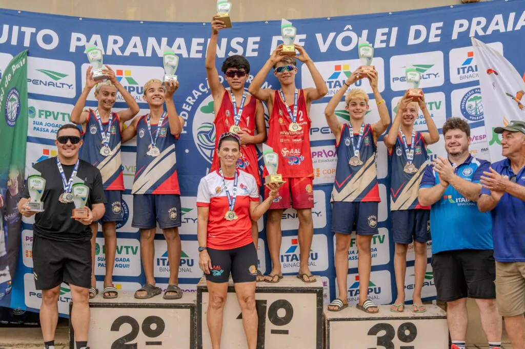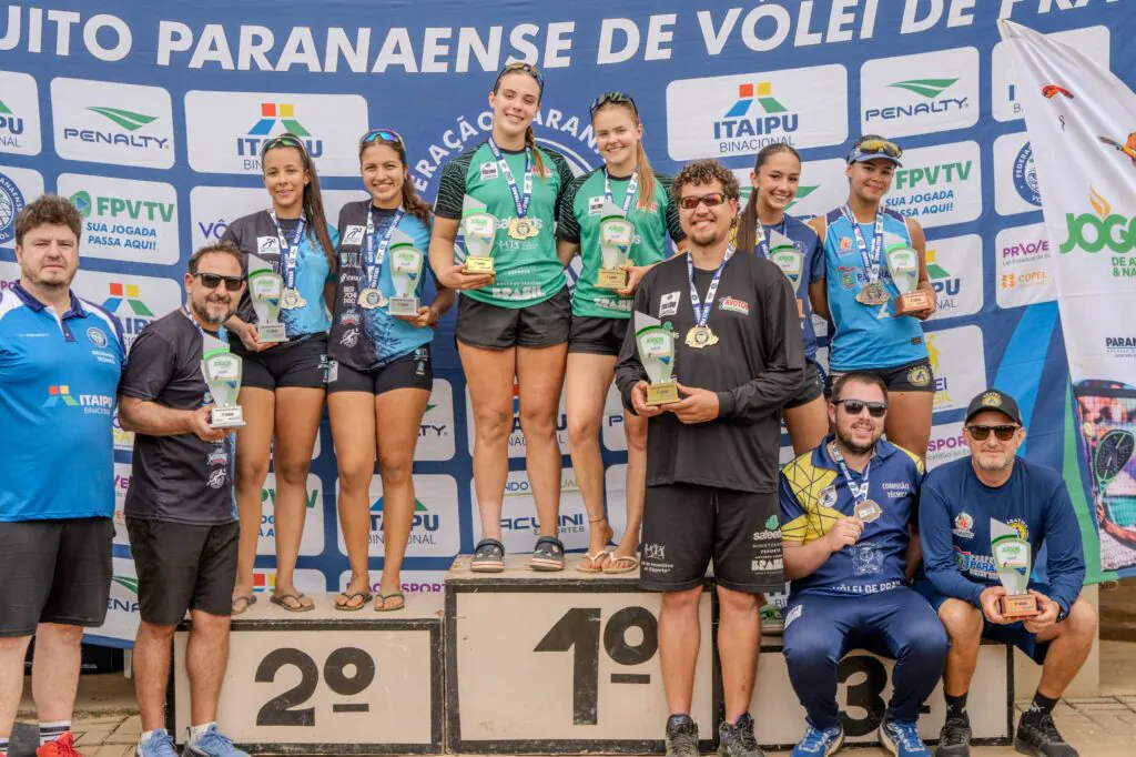 Já na categoria Sub-21, as duas duplas que venceram no Sub-19 voltaram ao pódio e garantiram mais uma medalha. Fernanda e Aninha (Tol) foram superadas na final por Alicia (Foz) e Bia (ACVP). Já Vinícius e Derick, de Paranaguá, foram derrotados na decisão por Corbari (Med) e João (AMVP).