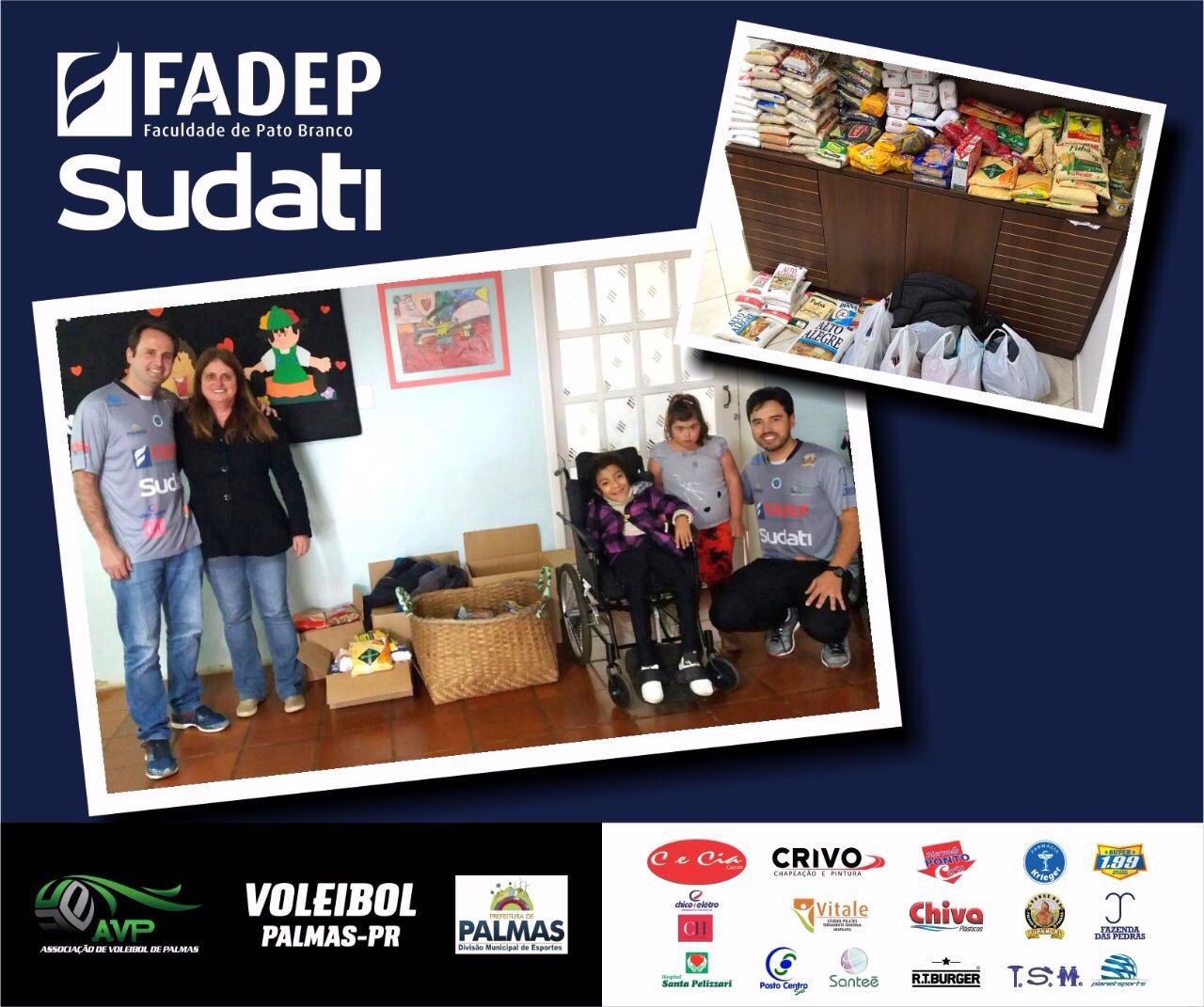 A Fadep/Sudati/Palmas continua dando exemplo dentro e fora de quadra. Durante a estreia no Campeonato Paranaense Adulto contra PM Foz/Pousada Cataratas, os torcedores palmenses que compareceram ao ginásio Monsenhor Engelberto fizeram doação de alimentos. A ação, batizada como “Sacada de Gratidão”, arrecadou 150kg de donativos, que foram entregues a Associação de Pais e Amigos dos Excepcionais de Palmas (APAE).