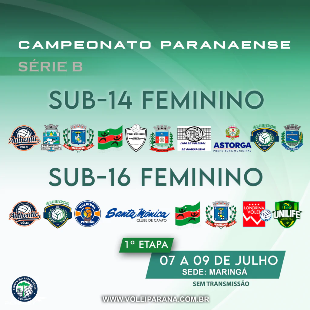 Começa nesta sexta-feira (07), em Maringá, a primeira etapa dos campeonatos Sub-14 e Sub-16 feminino, Série B. Até o próximo domingo (09), mais de 250 atletas de 18 equipe estarão reunidos no norte do estado participando das competições que somam 45 jogos nos três dias de disputas.