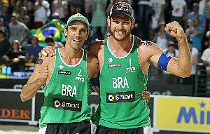 A decisão, contra os norte-americanos Jake Gibb e Sean Rosenthal, será às 15h50 (de Brasília) deste domingo (17.06). Às 13h, Fuerbringer/Lucena, também dos Estados Unidos, e Heyer/Chevallier, da Suíça, disputarão o bronze. Os dois jogos serão transmitidos ao vivo pelos canais Sportv e Esporte Interativo.