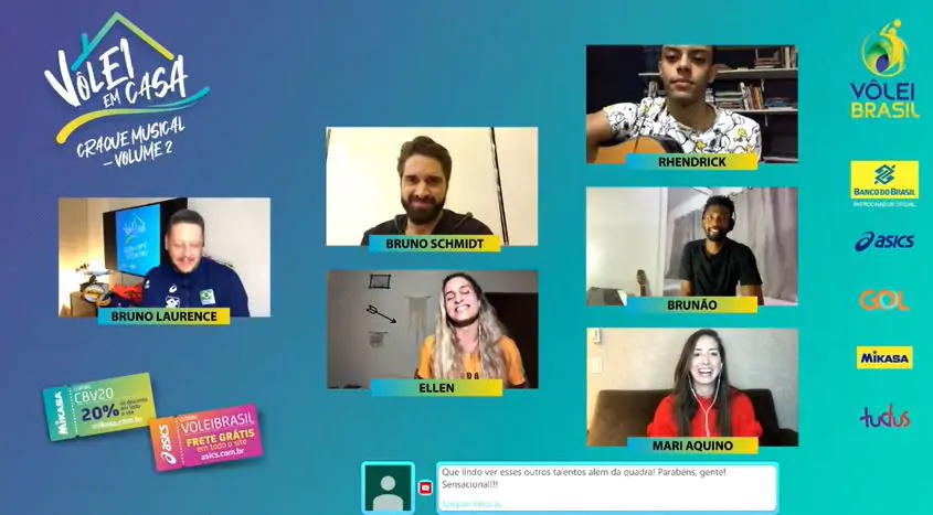 Ao longo de pouco mais de dois meses a CBV promoveu a primeira temporada do Vôlei em Casa, que, em 14 episódios, reuniu grandes nomes do voleibol para relembrar momentos importantes na história do esporte, discutir cuidados com o retorno, além de mostrar o talento musical de alguns craques. O projeto foi transmitido ao vivo pelo canal da entidade no YouTube, e comandado pelo jornalista Bruno Laurence. Na abertura e no encerramento o tema foi a música, com a presença de oito nomes do voleibol brasileiro. E, além do entretenimento do público, que pôde ver uma outra faceta dos ídolos, os próprios participantes aproveitaram a oportunidade para formar parcerias e – por que não? – “tietar” mesmo.