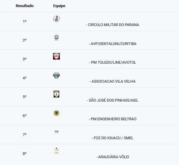 Completando o pódio, o PM Toledo/ Line/ Avotol superou o Associação Vila Velha e garantiu a medalha de bronze. Confira a classificação final do Campeonato Paranaense Sub-16 Masculino, Série A: