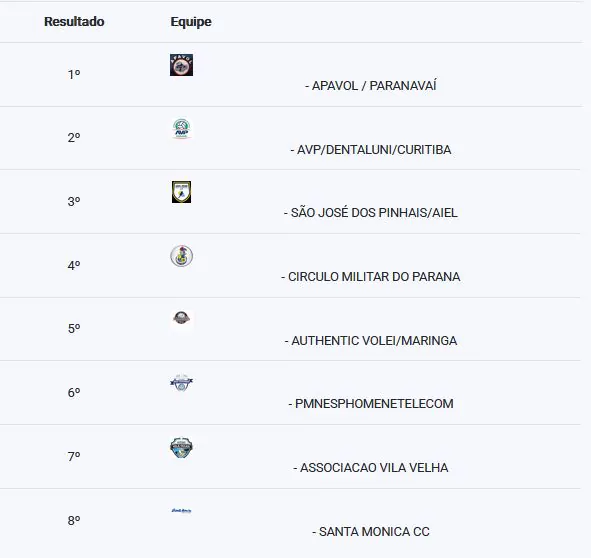 Para completar o pódio, o São José dos Pinhias/ Aiel faturou o bronze ao vencer o Círculo Militar do Paraná em dois sets emocionantes. Confira como ficou a classificação final do Campeonato Paranaense Sub-14 Masculino, Série A:
