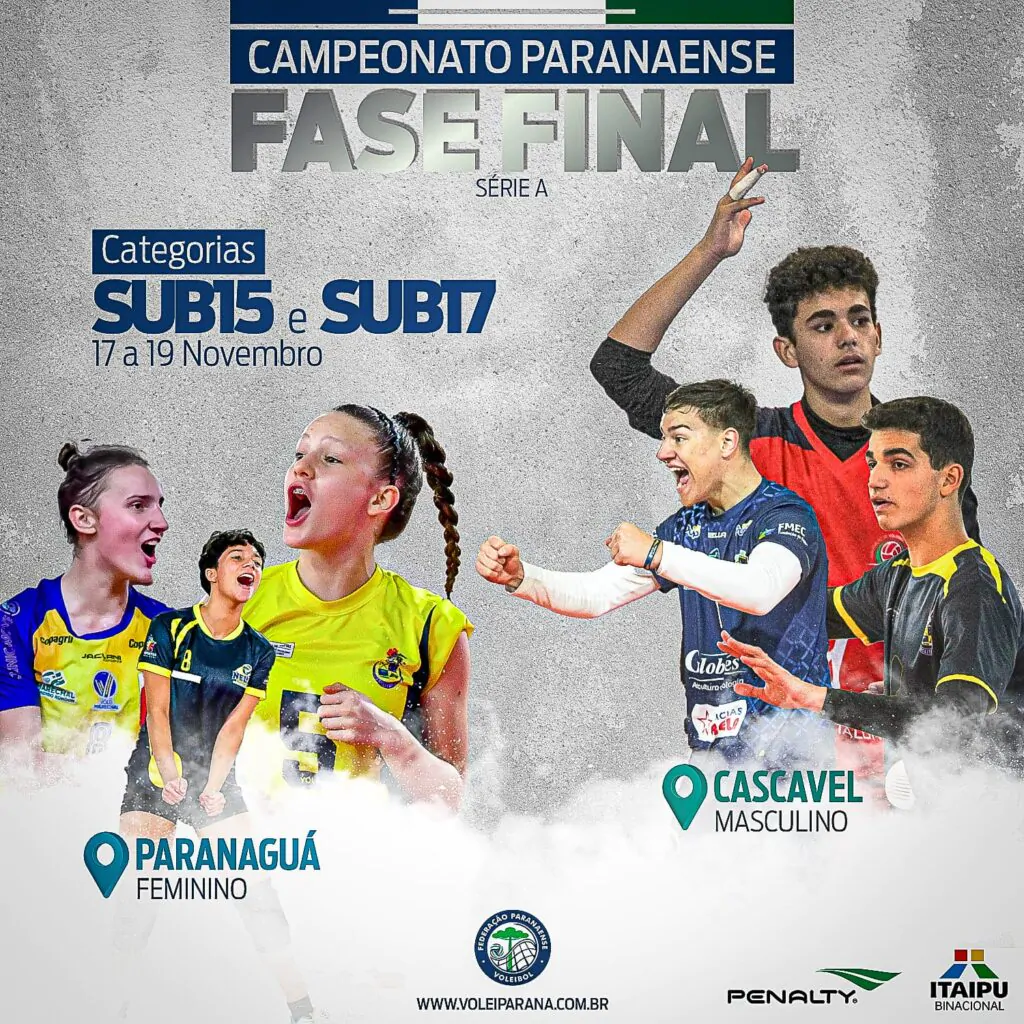 O final de semana promete muitas emoções em duas cidades do estado pela Fase Final dos Campeonatos Paranaenses Sub-15 e Sub-17, da Série A. Em Paranaguá, entre os dias 17 e 19, as equipes femininas se reúnem para definir as campeãs da temporada. Na mesma data, os times masculinos se reencontram em Cascavel para os últimos jogos da competição até a definição dos campeões.
