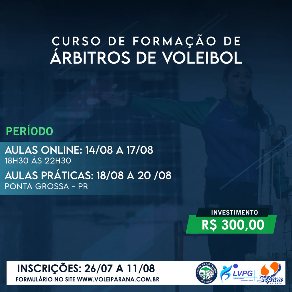 Estão abertas as inscrições para o segundo Curso de formação de árbitros promovido pela Federação Paranaense de Voleibol em 2023. Poderão participar estudantes e profissionais de educação física, atletas, técnicos e demais interessados em atuar nos jogos promovidos pela FPV e seus parceiros.