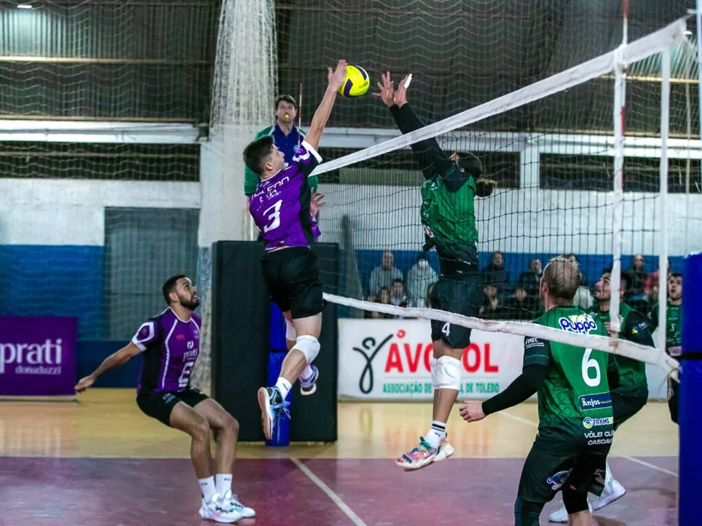 O duelo entre as equipes do oeste, PM Toledo/ Prati Donaduzi/ Avotol e Vôlei Clube Cascavel, pelo Campeonato Paranaense Adulto masculino, foi eletrizante. Na noite desta terça-feira (13), os times entraram em quadra pela primeira vez na competição e fizeram logo um jogo de cinco sets, cheio de viradas de placar e indefinições até o último ponto.