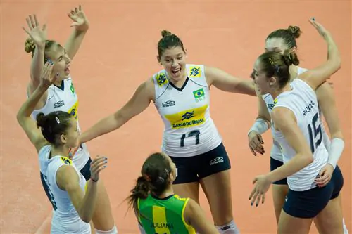BRASIL – Nayara, Rosamaria, Gabriela, Paula, Raquel e Valquíria. Líbero: Juliana Felipelli