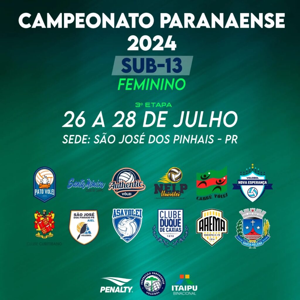 Os Campeonatos Paranaenses Sub-13, feminino e masculino, são promovidos pela Federação Paranaense de Voleibol, com patrocínio da Itaipu Binacional e da Penalty. Por Assessoria FPV