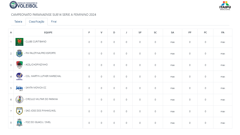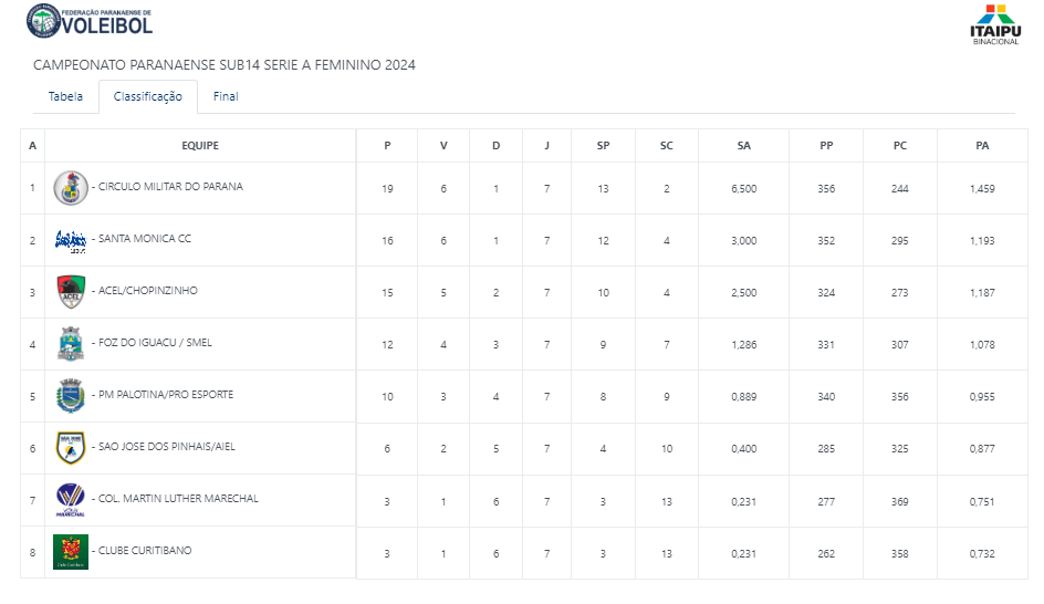 Confira a atual a classificação do feminino Sub-14, Série A em: TABELA E RESULTADOS