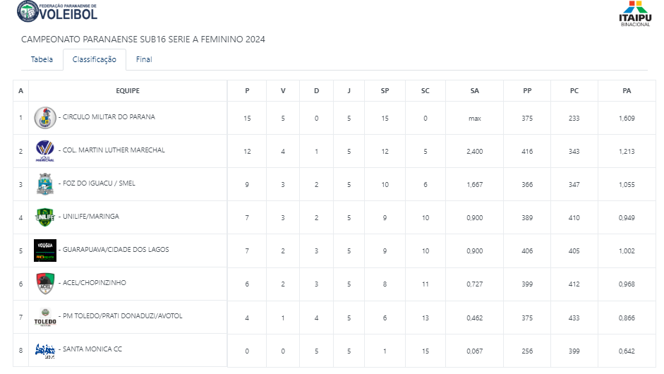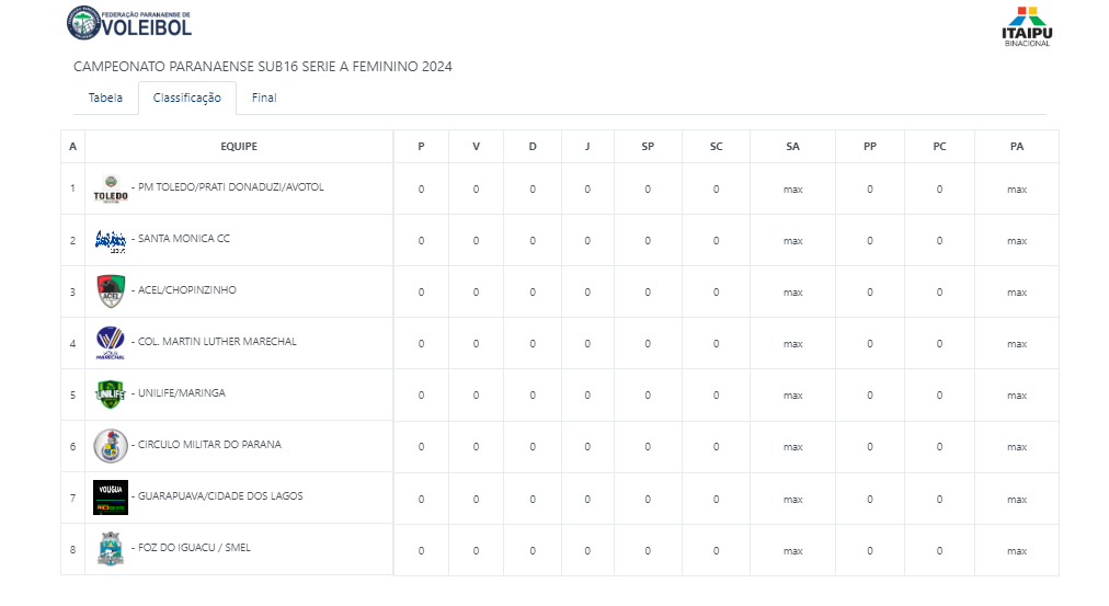 Confira a atual a classificação do masculino Sub-16, Série A em: TABELA E RESULTADOS