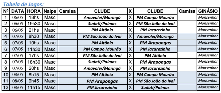 Ao todo serão sete equipes lutando pelo título da competição: Arapongas, Palmas, Altônia, Campo Mourão, Jacarezinho, São João do Ivaí e Maringá/Amavolei. A forma de disputa prevê que todos joguem contra todos e, ao final do primeiro turno, os quatro melhores colocados confirmam o acesso às semifinais do torneio.