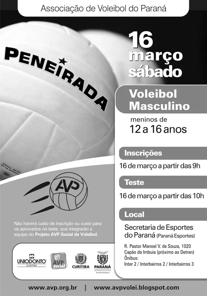 Peneirada da AVP em Curitiba: 16 de março