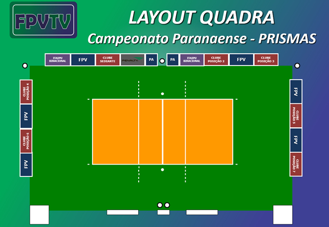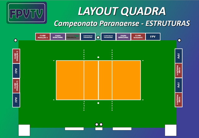 Para o Campeonato Paranaense, poderão ser utilizados os dois modelos de layout de quadra, de acordo com o que possuir a equipe sediante: prismas de espumas ou estruturas metálicas.