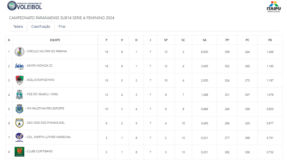 Confira a atual a classificação do feminino Sub-14, Série A: TABELA E RESULTADOS