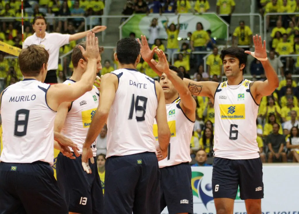 BRASIL: Marlon, Vissotto, Rodrigão, Gustavo, Murilo e Dante. Líbero: Serginho