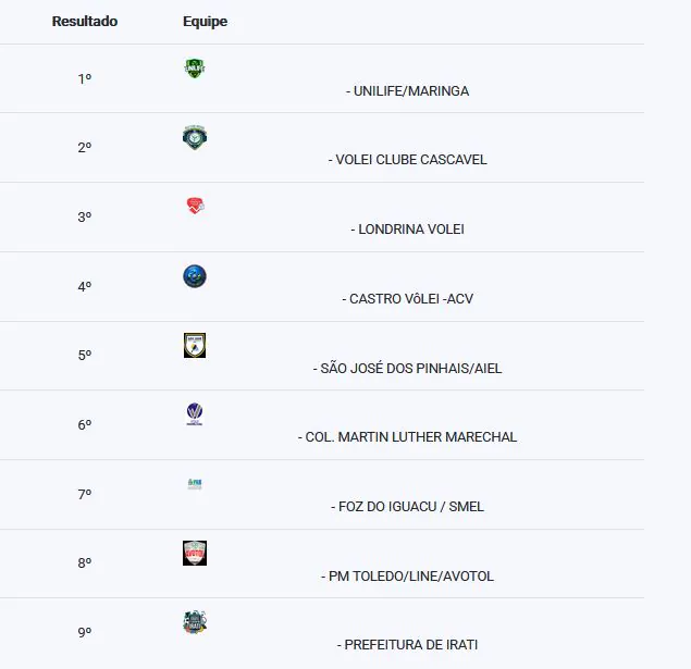 08/11 | 10h30 | Unicesumar | Quartas-de-final | Castro Vôlei 3×2 São José dos Pinhais/ Aiel (27/25 20/25 21/25 25/14 15/11)